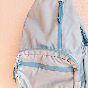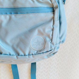 Converse baby blue backpack/ several front pockets that contain other pockets/ bottle pocket on the side/ Internal laptop pocket/ Adjustable straps/ Waterproof zippers/ In very good condition, some small stains