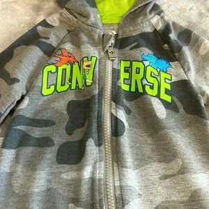 Converse - camo design hooded sleeper/romper/jumpsuit. Size 12 months