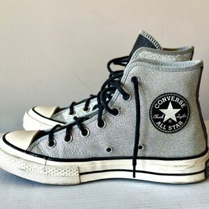 chuck Taylor Converse platform high tops silver sparkle Size 7