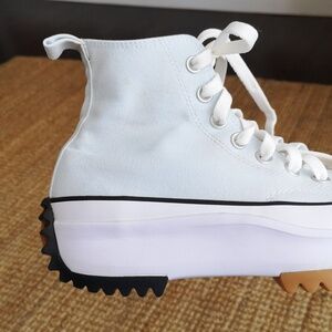 Very cool platform sneakers from Converse, a little different style than the ones you usually see. Colour is nice: a very pale blue (it doesn't really show up well in my photos!). A couple of wee marks (please see last photo) but otherwise in excellent condition. Size 8.