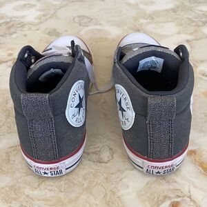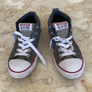 In excellent preowned condition Converse Chuck Taylor® All Star® Mid Sneaker. Get iconic Chuck Taylor details and elevated style in the Converse Big Boys Chuck Taylor All Star Street Mid Casual Sneakers. Featuring a unique upper material, these sneaker boots make a statement while delivering the comfort you need on the daily. A classic skate inspired sneaker with padded ankle,