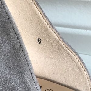 Heels twist off and can be changed for ones of a lower height or different colour! Pashion Footwear 1.0 (discontinued) D'Orsay shoes in Storm (a greyer shade of taupe). Removable/ changeable strap. Genuine leather insole, genuine suede upper and rubber outsole. Comes with shoes, stelo arch supports, 4" block heels in Storm, 3" block heels in a snakeskin print and heel caps in Tan (beige). Slight discolouration spot on the outside of the left foot shoe (see last photo). Condition: Very Good! Photos with model show a different colour with heel caps on.