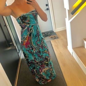 Size medium, gorgeous convertible maxi dress. This dress comes with nice long ties that can turn this dress into a halter, strapless, one-shoulder or whatever kind of dress you want! Super stretchy and super comfortable. Never worn!!