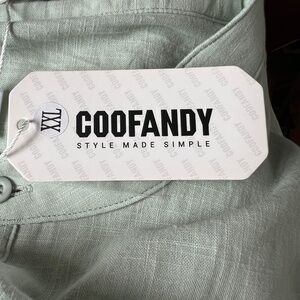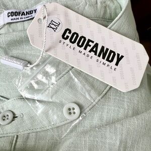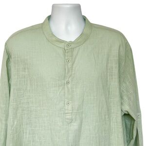 Coofandy Shirt Pale Green 4 Button Henley Collarless Size XXL Cotton Hemp NEW