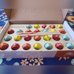 How to Play: Find the fish that match the color and letter, using the wooden fishing pole, magnets are attached to the mouth of the fish that lets them pick up the fish. There are two poles so that kids can take turns catching fish, competition with friends to see who gets more, or just create their own unique challenges.