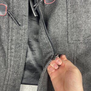 Broken zipper & missing 1 clip & stain on front, as-is.