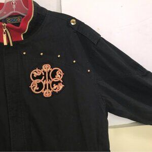 Coogi Vintage Jacket Blazer Cotton Brocade Embroidery Logo Studs Pockets Gold Zip