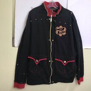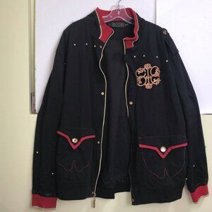 Coogi Vintage Jacket Blazer Cotton Brocade Embroidery Logo Studs Pocket Zip XXL