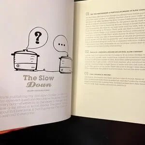 Hardcover cooking book titled Slower is Better: From a Taco Fiesta to Chocolate Pudding Cake by Ricardo.