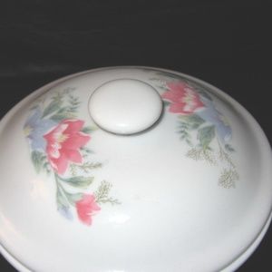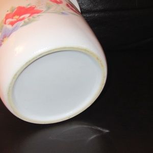 Stands about 7-8" tall and maybe 6" diameter. Nice floral design painted around it. Great condition no damage.