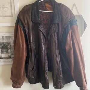 Cool oversized 90's leather jacket - caramel brown