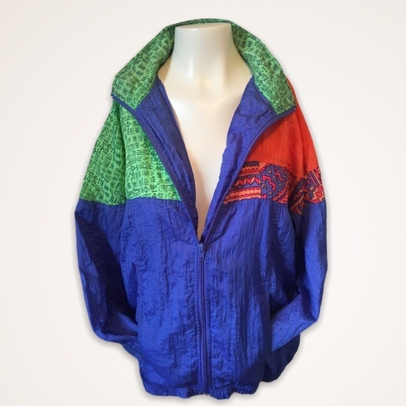 Vibrant vintage collared jacket! Pull out your parachute pants and you are ready to go! Great shape!!