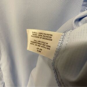 A warm weather basic that features strategically placed vents that circulate air into the shoulder are and underarms. Stay cool and stay protected from the sun with this rated UPF 50+ shirt. Made with fabric that is moisture wicking, lightweight and breathable. Excellent condition. Size 3xl.