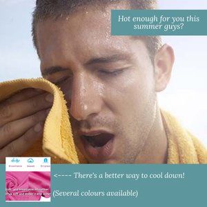 BRAND NEW, STILL SEALED! No chemicals! It's easy to activate this chilling towel when you simply soak, wring out and snap it. The unique cooling system uses moisture from the towel to draw the sweat away from your skin to keep you cool. Can be worn a variety of ways: around the neck, head or other body part to help keep you cool as you move around, even use on the forehead when sick. It is anti-UV and also helpful if you sweat profusely! Also great for camping!