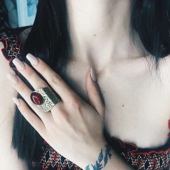 High Quality handmade, Designed with Carvings and gemstones , Adjustable to Fit any size - wear it on your thumb, pointer or whichever finger wants a ring on any given day Stylish and full of benefits you will always find a reason to wear it.