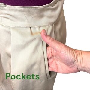 2. H&M high-waisted Lyocell skirt. Attached waist tie at front. Two side pockets. Pleats. Concealed zip closure in back. 100% Lyocell. Size 18.