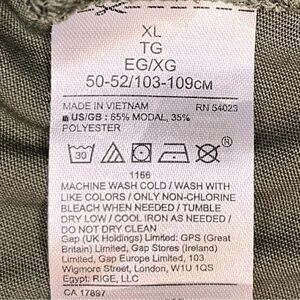 top with shirt hem. 55% modal and 35% polyester. Size XL. About 24” long - but note that includes the high waist that goes above the natural waist.