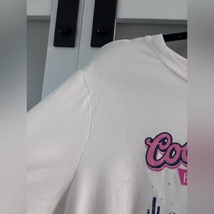 White t-shirt featuring Coors Banquet Rodeo graphic in pink and black.
