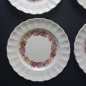 Copeland Spode ROSE BRIAR, Vintage Side Plates, Set of 4, Chelsea Wicker Shape