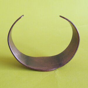 Very pretty cuff bracelet for a horse lover. It is for a rather small wrist. Horse head etched on an oval with raised details on either side of it. It is unmarked. Will fit 6 inch diameter wrist, maybe up to 6.5 inch.