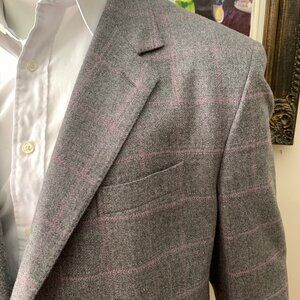 Coppley Wool REDA FLEXO 2-Button Single Breasted Fully Lined Men’s 52R Checkered Gray Pink Blazer Jacket