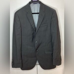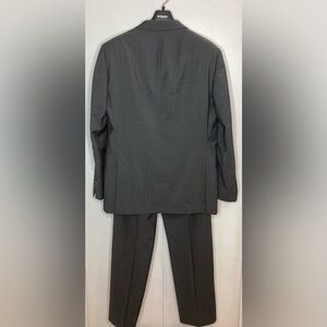 100% virgin wool grey suit. Jacket has 3 inner pockets, breast pocket and 2 faux lower pockets. Tailored..in good condition. very classic.