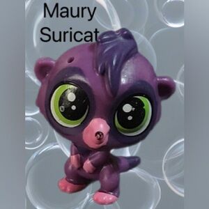 2.This purple and pink meerkat is a Littlest Pet Shop Maury Suricat figure, specifically model #4144.