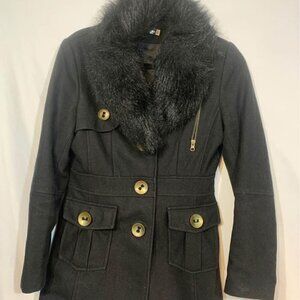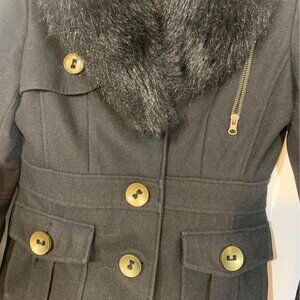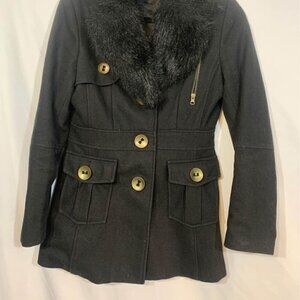 Woman’s Medium military style peacoat. Removable fur. Black. Excellent condition. Warm and cozy.
