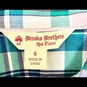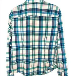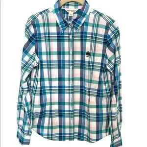 Brooks Brother’s Check buttoned long-sleeve shirt. Teal, blue and white in great pre-owned condition.