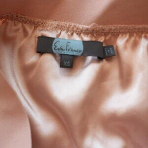 Beautiful tiered A-line skirt by Eva Franco in a soft peach tone with floral embroidery. Fully lined with a silky polyester-spandex blend for comfort and light stretch. Perfect for brunch, weddings, or spring/summer events. Made in the USA.