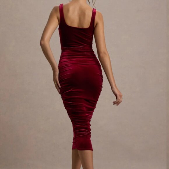 Cora Berry Velvet Square-Neck Bodycon Midi Dress