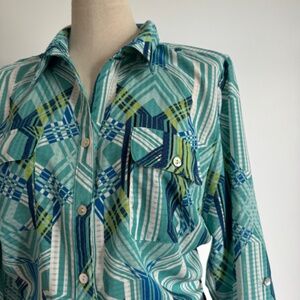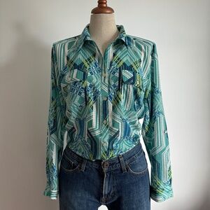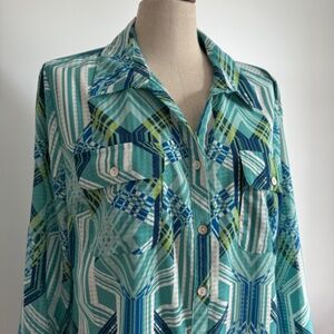 Coral Bay - Blue and White Long Sleeves Lined Button Down Shirt - two pocket on the chest - split on the side - 3/4 Sleeves Lenght possible - Excellent pre-owned condition. Size: L