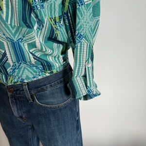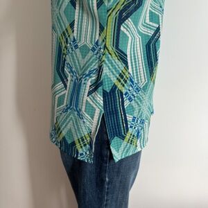 Coral Bay - Blue and White Long Sleeves Lined Button Down Shirt - two pocket on the chest - split on the side - 3/4 Sleeves Lenght possible - Excellent pre-owned condition.