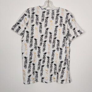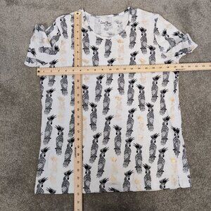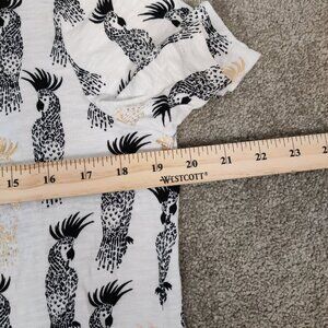 Coral Bay Women's Top Size PL White Black Gold Cotton Summer Resortwear Beach Cockatoo Parrot Print