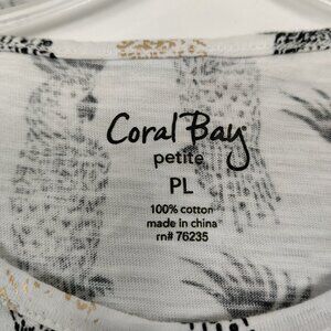 Coral Bay Women's Top Size PL White Black Gold Cotton Summer Resortwear Beach