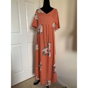 Coral Cotton Floral Maxi Dress