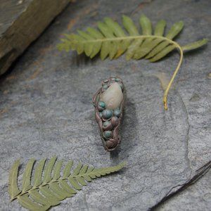 The clip was hand sculpted from polymer clay, by me with love. Accented by a milky quartz stone, this is a completely unique piece.