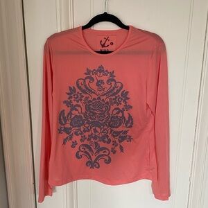 Coral Hiho swim shirt / coverup featuring a grey pattern on the front. Size L.