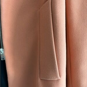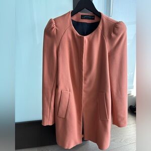 Zara CORAL ( not orange) jacket. Perfect as a light/mid weight piece over everything. I wore it with a navy jumpsuit.
