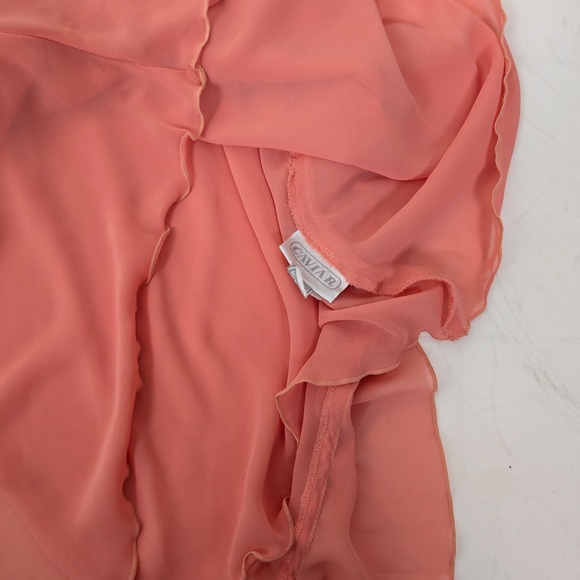Coral Midi Skirt Bias Cut Asymmetrical Satin Trim Layers Tiered Low Mid Rise