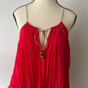 Gorgeous colour, gorgeous dress! Tiered and pleated giving the dress a lot of movement Sleeveless with hidden back zipper Round neck with keyhole front and back
