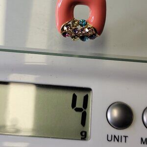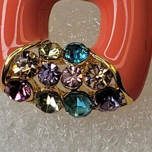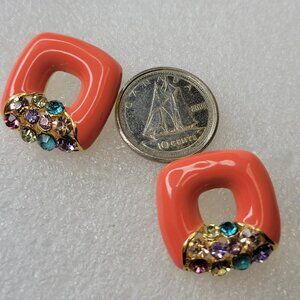 Square Shaped Corally Orange Small Earrings with Colourful Crystals