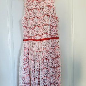 Coral and White Sleeveless Fit and Flare Lace Dress