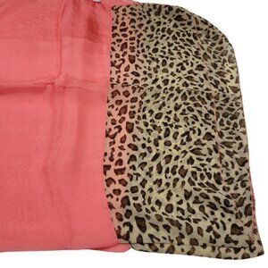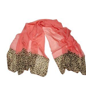 Coral colored scarf- thin wide and longm sheer scarf with an animal print border