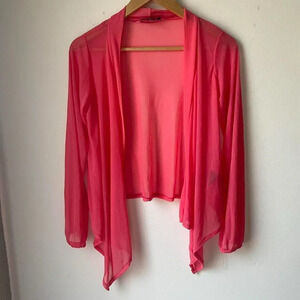 Coral pink mesh tie front top / cardigan / shrug.