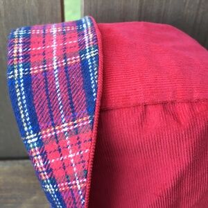 Rust-Red Corduroy with Navy and Red Plaid Lining