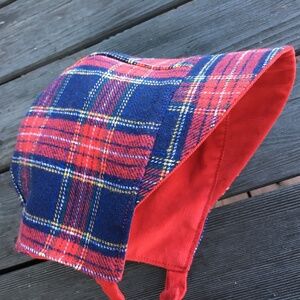Simple and sweet pure cotton corduroy bonnets lined in plaid flannel.