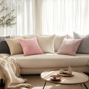 🆕 Corduroy Soft Soild Decorative Square Throw Pillow Covers Valentine Set Sofa