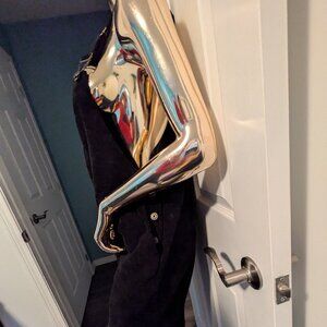 100% cotton. Black. Size small. 42 cm waist. 32 cm crotch. 26 cm thigh width. Leg length 95 cm. Hips: 50 cm. Adjustable straps. 3 buttons at the hips. Relax fit.