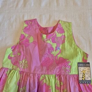 Corky's Kids girls size 7 lime & pink flamingo & flower dress, NWT